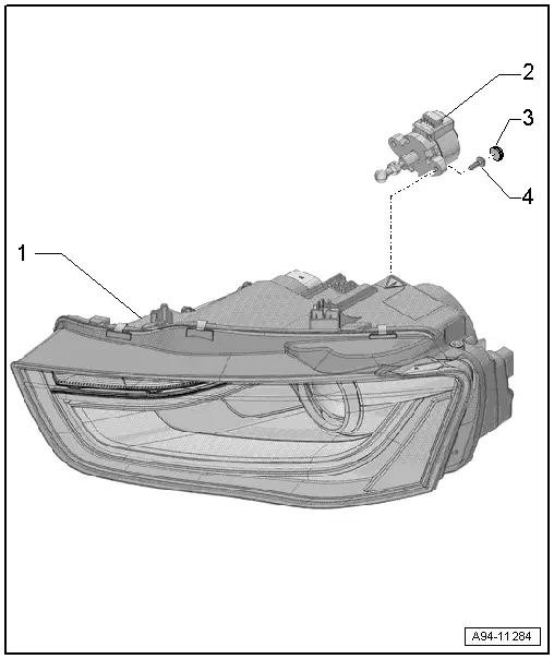 | q | Removing and installing → Chapter „Removing and installing headlight range control motor -V48-/-V49- - vehicles from model year 2013 onwards“ |