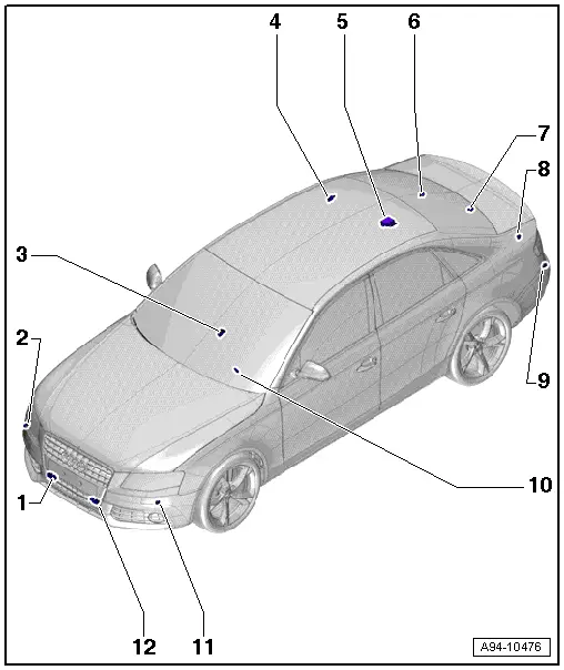 | 12 - | Front centre left parking aid sender -G254- |