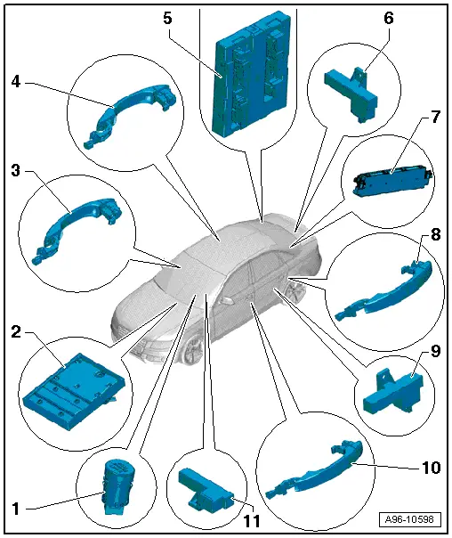 | System overview for „Advanced Key“ (4-door vehicles) |