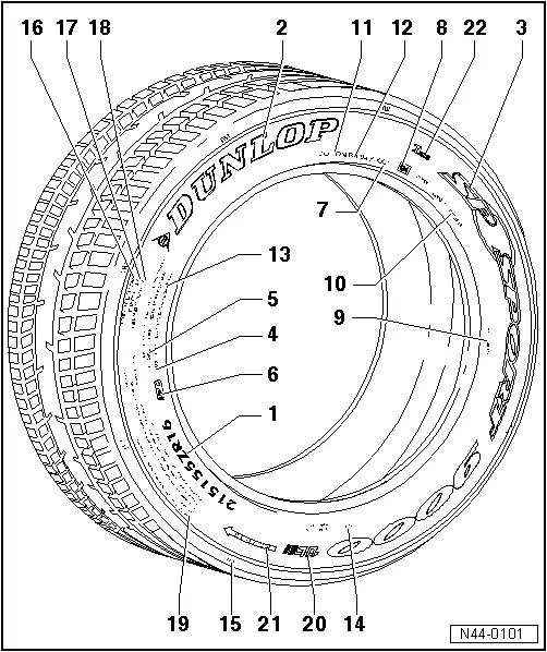 Note| Retreaded tyres also carry the marking „R“ or „Retreaded“ and the retreading date instead of the date of manufacture. |