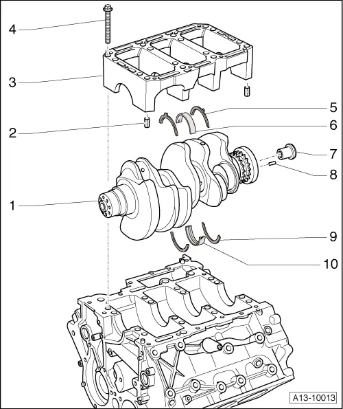 | q | Install new bearing shells for the cylinder block with the correct coloured markings → Fig. |