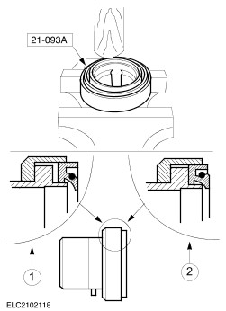 CAUTION:The oil seal must be inserted in the tool as far as the stop. Fit the oil seal in the special tool. - Lay the special tool on a vice and use a hammer handle to press the oil seal into place.