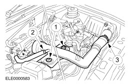 Connect spark plug connectors 1 and 2 and fit the spark cables using clips.