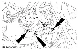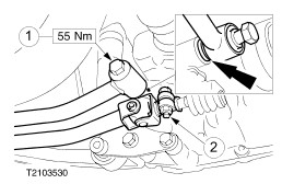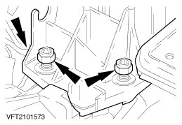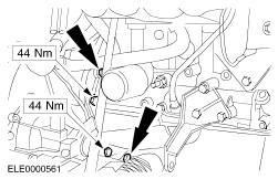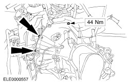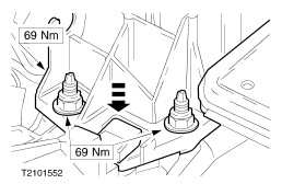 CAUTION:Make sure that the two locating tubes are installed. Place the transmission into position and tighten the rear flange bolts. | | | -