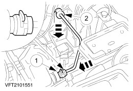 Connect the hydraulic pipe of the clutch operating system. NOTE:Make sure the spring clip engages securely. - Insert the pipe into the pre-loading valve and fit the spring clip.