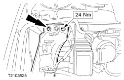 | Installation Special Tool(s) | | Lifting bracket, engine 21-068A | | | Remover/installer, cooling hose clamp 24-003 | Materials Name Specification Cable tie Coolant ESDM-97B49-A Grease WSD-M1C230-A Transmission fluid WSD-M2C200-C Brake fluid SAM-6C9103-A Installation | | -
