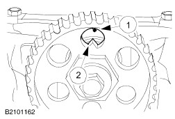Check the TDC timing mark on the crankshaft. - TDC mark on cylinder head.