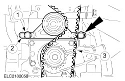Install the timing belt tensioner and the timing belt. - Press the timing belt tensioner all the way to the left.