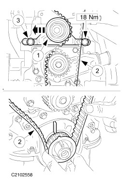 - Fit the timing belt anti-clockwise, starting at the crankshaft.