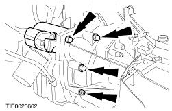 Remove the starter motor and the transaxle left-hand retaining bolt. | | | -