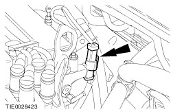 Disconnect the fuel return line quick release coupling. For additional information, refer to: Quick Release Coupling (310-00 Fuel System - General Information, General Procedures). | | | -