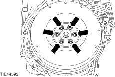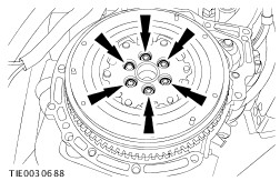 NOTE:Install new flywheel bolts. NOTE:Do not fully tighten the flywheel bolts at this stage. Install the flywheel. | All vehicles | | -