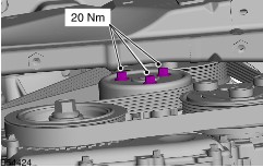 Loosen the coolant pump pulley retaining bolts. | | | -