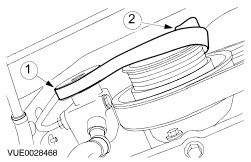 Install the belt guide tool (supplied in the parts kit) to the accessory drive belt (shown from above for clarity).
