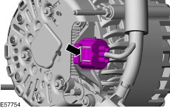 Detach the generator wiring harness from the retaining clip. | Item 2 : Generator electrical connector | | -
