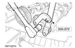 Remove the camshaft timing pulleys. - Counterhold using the special tool.