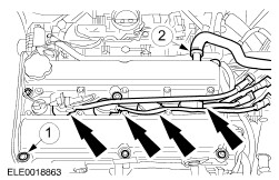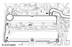 CAUTION:Exchange shims to correct the valve clearance. Disconnect the battery ground lead. For additional information, refer to: Batterie abklemmen (414-01, General Procedures). | | | -