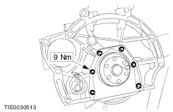 NOTE:Install a new crankshaft rear seal carrier. NOTE:A new crankshaft rear seal carrier is supplied with an installation sleeve which must be removed following installation. NOTE:Do not lubricate the seal or the crankshaft journal. Install the crankshaft rear seal carrier. | | | -
