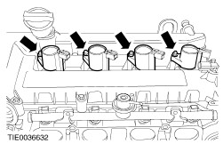 CAUTION:Keep the camshaft bearing caps, valve tappets and the camshafts in order for installation. CAUTION:Remove the camshaft bearing caps in the sequence shown. NOTE:Working in several stages, release each camshaft bearing cap retaining bolt two turns at a time. Remove the camshaft bearing caps. - Remove the valve tappets.
