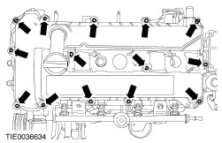 Remove the clutch disc and pressure plate. For additional information, refer to: Clutch Disc and Pressure Plate (308-01A Clutch - Vehicles With: 5-Speed Manual Transmission (iB5), Removal and Installation) / Clutch Disc and Pressure Plate (308-01 Clutch - Vehicles With: 5-Speed Manual Transmission (MTX-75), Removal and Installation). | | | -