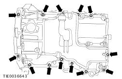 NOTE:Remove the oil pan by pulling it downwards to prevent oil deposits or abraded particles from entering the engine. Remove the oil pan. | | | -