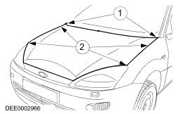 The hood latch must be installed so that the hood engages without stress and the clearances on the left and right-hand sides are not changed.