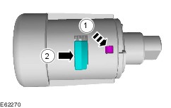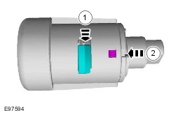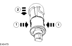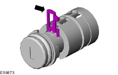 Install the ignition lock cylinder. For additional information, refer to: Ignition Lock Cylinder (501-14 Handles, Locks, Latches and Entry Systems, Removal and Installation). | Disassembly Details Item 1 : Ignition lock cylinder locking button | | -