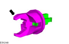 NOTE:Make sure that the hood lock cylinder connecting shaft clips are facing the correct way. The short clips of the hood lock cylinder connecting shaft should be installed into the hood lock cylinder connecting clip. NOTE:The hood lock cylinder connecting shaft clips must be compressed before being installed into the hood lock cylinder connecting clip. Using a suitable flat bladed screwdriver, install the hood lock cylinder connecting clip to the hood lock cylinder connecting shaft (hood latch shown removed for clarity). | Item 4 : Hood latch | | -