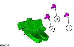 Install and hand tighten the liftgate latch retaining bolts in the order shown. | Item 2 : Liftgate trim panel | | -