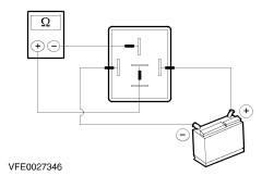 Measure the resistance between terminal 30 and terminal 87 Is the resistance greater than 10 kohms? If yes, go to 2. If no, INSTALL a new relay. - Check relay contact in activated condition (closed position)