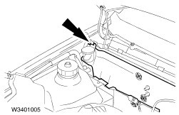 Detach the coolant expansion tank. - Unhook the coolant expansion tank from its bracket.