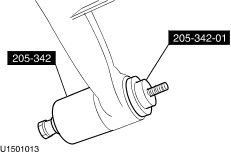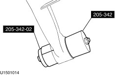 | Removal and Installation Special Tool(s) | | Remover/Installer, Pivot Bushing 205-342 (15-110) | | | Adaptor for 205-342 205-342-01 (15-110-01) | | | Adaptor for 205-342 205-342-02 (15-110-02) | General Equipment Blind rivet gun Electric hand drill Trolley jack Materials Name Specification White grease A94SX-M1C41-AA Removal | | -
