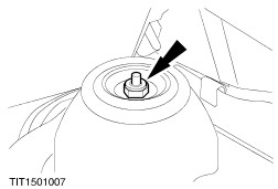 Remove the strut and spring assembly top mount nut.