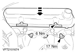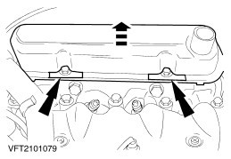 Remove the cylinder head cover with gasket (four bolts with extended washers). | | | -