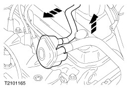 Remove the oil filler cap. - Pull the crankcase breather hose off the T-piece.