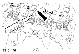 CAUTION:Only tighten the rocker arm bolts to achieve the required valve clearance. If the valve clearance is too small, unscrew the rocker arm bolt and tighten it again until the required clearance is achieved. Adjust the valve clearances. - Measure the valve clearance with feeler gauges. Adjust the valve clearance at the rocker arm bolts.