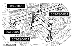| In-vehicle Repair Special Tool(s) | | Universal Flange Holding Wrench 205-072 (15-030A) | | | Adapter for 205-072 205-072-02 | | | Support Bar, Engine 303-290A | | | Adapter for 303-290A 303-290-02 | | | Adapter for 303-290A 303-290-03A | | | Adapter for 303-290A 303-290-05A | General Equipment Removal All vehicles | | -