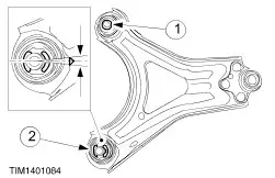 NOTE:The special tool installs the bushings to the correct depth. Using the special tool, install the front and rear bushings. | Vehicles built 08/1996 onwards | | -