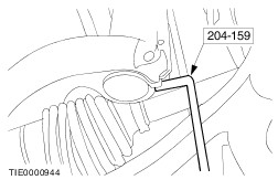 CAUTION:Suspend the halfshaft. The inner joint must not be bent more than 18 degrees. The outer joint must not be bent more than 45 degrees. Using the special tool, detach the wheel knuckle from the suspension strut. | | | -