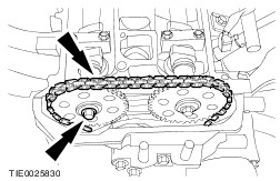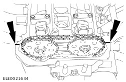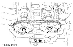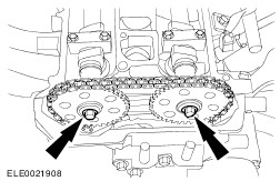 NOTE:Do not tighten the camshaft sprocket retaining bolt at this stage. Attach the exhaust camshaft sprocket together with the timing chain to the exhaust camshaft. | | | -