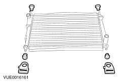 NOTE:Support the air conditioning condenser. Remove the radiator. - Remove the air conditioning condenser retaining bolts.