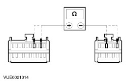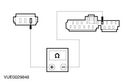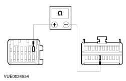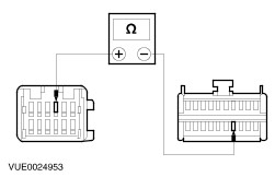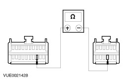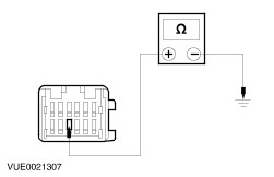 | | | Are the resistances greater than 10,000 ohms (open circuit)? Yes No REPAIR the circuit in question. TEST the system for normal operation. | | D2: CHECK SPEAKER RETURN CIRCUIT FOR SHORT TO GROUND | | | 1 Measure the resistance between the following audio unit connector pins and ground: - (Front left speaker) C484 pin 2, circuit 10-MD10 (GY/BK), harness side and ground.