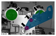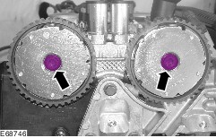 Install the camshafts in the positions shown. | | | -