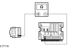| | | Is the resistance less than 1 ohm? Yes No REPAIR the circuit in question. TEST the system for normal operation. | | E4: CHECK THE INOPERATIVE SPEAKER(S) CIRCUIT FOR SHORT TO GROUND | | | 1 Measure the resistance between the following inoperative speaker(s) input circuit(s), harness side and ground: - Left-hand drive vehicles (Left front speaker) C5ME07 pin 1, circuit VME07A (BK).