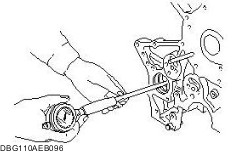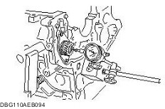 Measure the balance shaft bore in the cylinder block. Calculate the balance shaft-to-balance shaft bore clearance. Replace the balance shaft and/or cylinder block if necessary. - Standard clearance - Front, rear: 0.050—0.115 mm {0.0020—0.0045 in}.