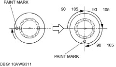 Using the marks as a reference, tighten the bolts by turning each 90°—105° in the sequence shown. | | -