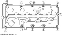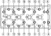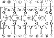 Loosen the camshaft cap bolts in three or four steps in the order shown. | Item 7 : Cylinder head | | -