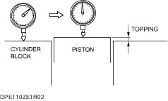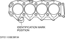 Choose the gasket according to each measured piston topping. Cylinder head gasket select table | Piston topping (mm {in}) | Cylinder head gasket identification mark | | 0.080—0.190 {0.004—0.007} | One dot | | 0.135—0.255 {0.006—0.010} | Nil dot | | 0.200—0.310 {0.008—0.012} | Two dots | | | | -