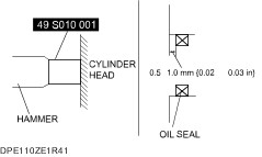 To ensure that the oil seal is installed correctly, measure the distance between the end of the cylinder head and the face of the oil seal. - Camshaft oil seal press-in amount 0.5—1.0 mm {0.02—0.03 in}.