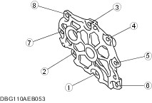 Tighten the bolts in two or three steps in the order shown. | Item 4 : Oil pipe | | -